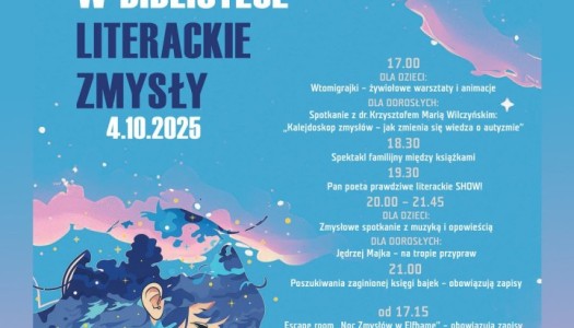 Serdecznie zapraszamy 4 października od godz. 17:00 do udziału w organizowanej przez Książnicę Beskidzką Nocy w Bibliotece – Literackie zmys...