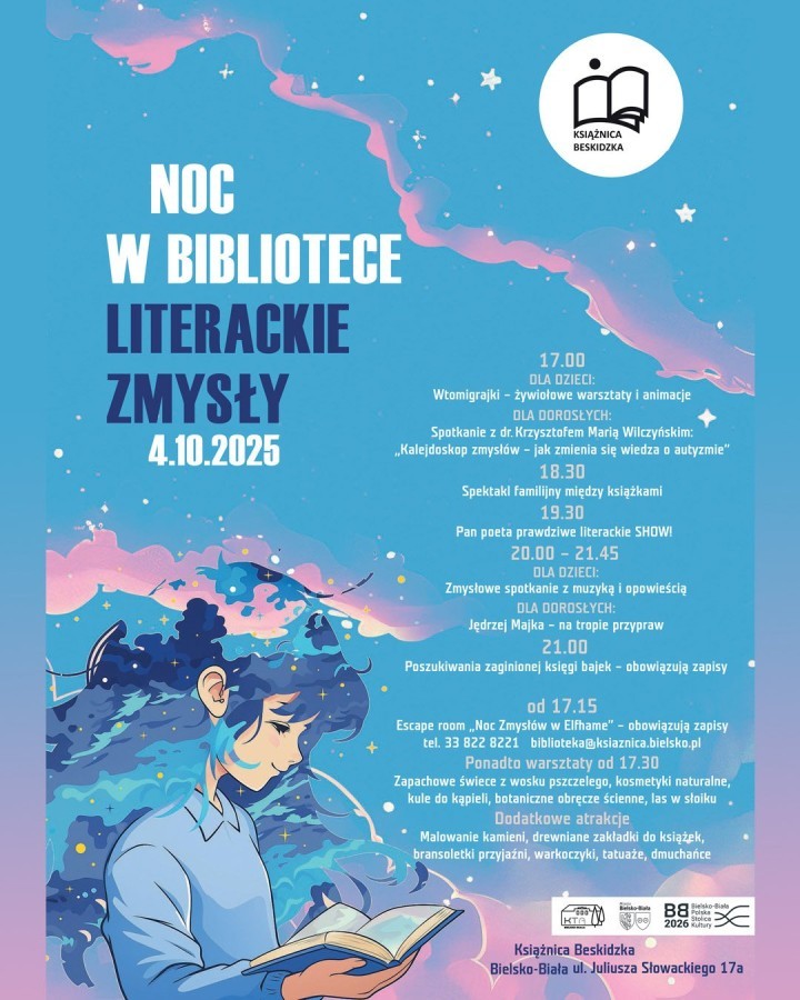 Serdecznie zapraszamy 4 października od godz. 17:00 do udziału w organizowanej przez Książnicę Beskidzką Nocy w Bibliotece – Literackie zmysły!