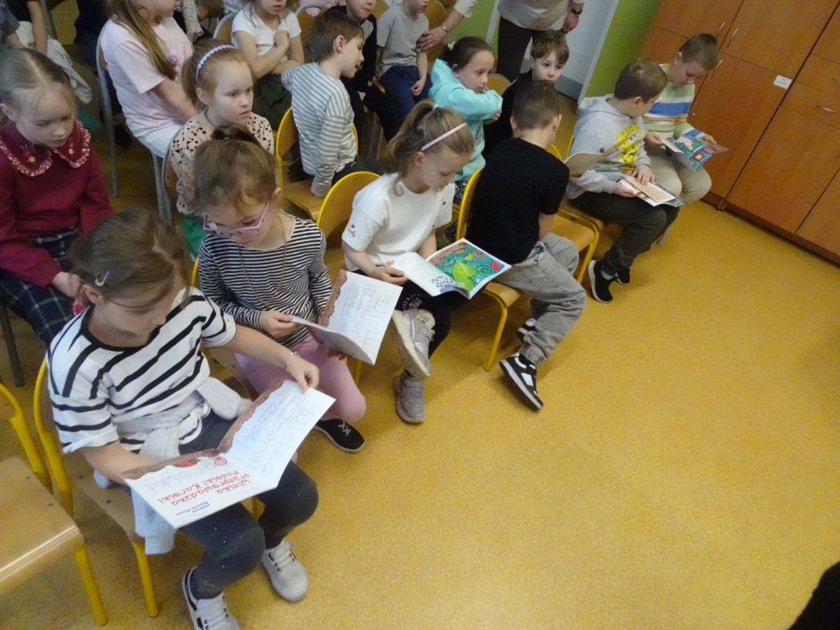Podczas spotkania autorka opowiadała o tym, dlaczego warto czytać książki – podkreślała, że rozwijają one wyobraźnię, wzbogacają słownictwo oraz pozwalają przenosić się do niezwykłych światów. Dzieci słuchały fragmentów jej książek, które pani Jolanta czytała, wprowadzając wszystkich w magiczny nastrój opowieści. Uczniowie chętnie odpowiadali na pytania prezentując dużą wiedzę na temat książek i czytelnictwa