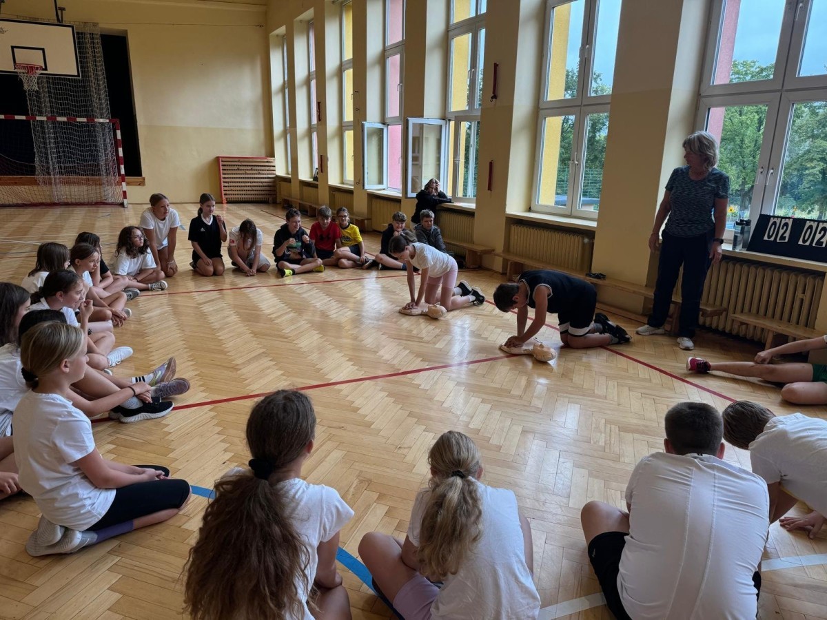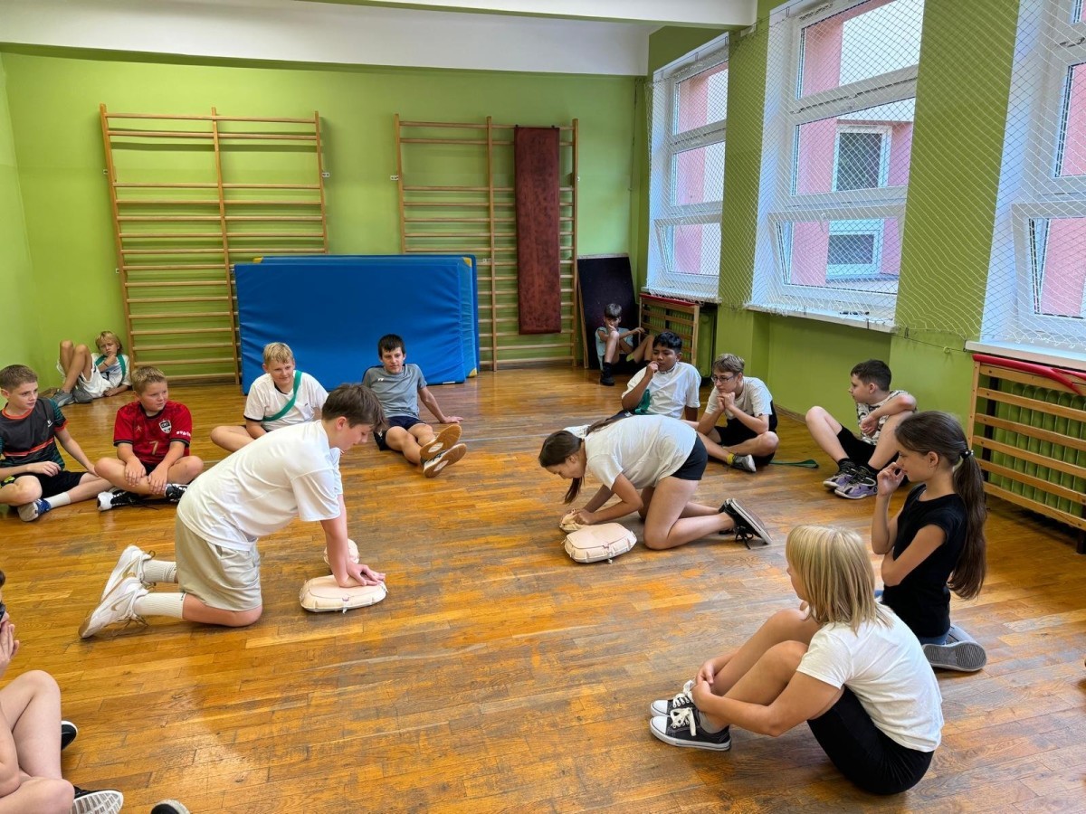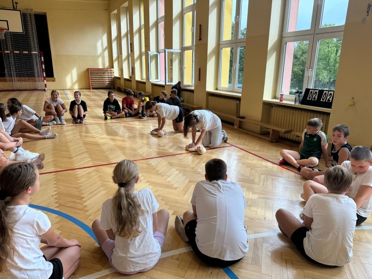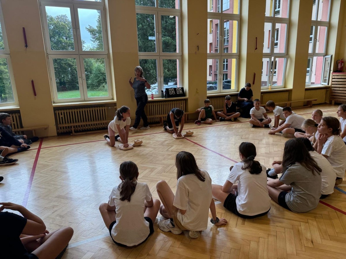 W tym roku szkolnym we wrześniu przeprowadziliśmy w Naszej Szkole zajęcia przypominające poznane zasady pierwszej pomocy. Zostali nimi objęci uczniowie klas 4-8 w trakcie lekcji wychowania fizycznego oraz edukacji zdrowotnej.