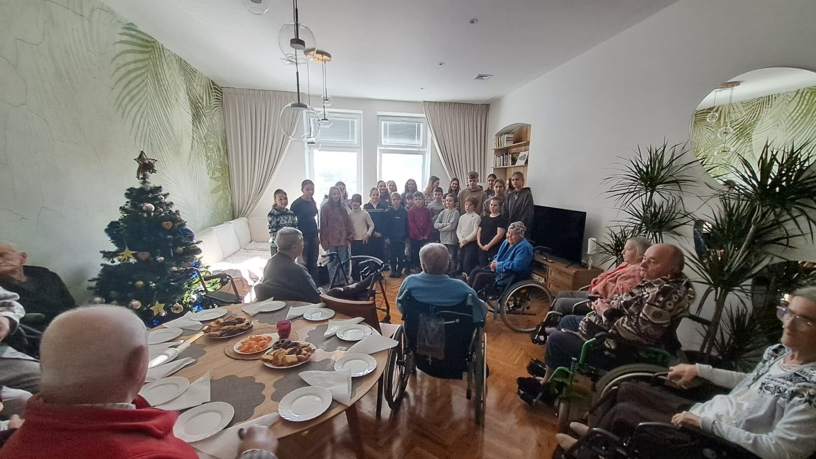 Uczniowie klasy 4b wraz z wolontariuszami uczęszczającymi do klas 8 odwiedzili Hospicjum im. św. Jana Pawła II Salwatoriańskiego Stowarzyszenia Hospicyjnego, niosąc radość i nadzieję poprzez wspólne kolędowanie. Świąteczne pieśni wypełniły hospicyjną świetlicę ciepłą, serdeczną atmosferą i wzruszyły zarówno pacjentów, jak i personel. Spotkanie było okazją do okazania bliskości, życzliwości oraz pamięci o osobach spędzających czas w hospicjum.