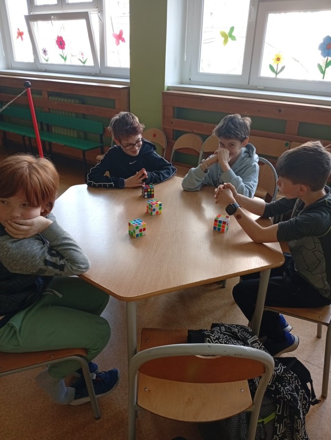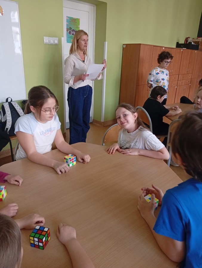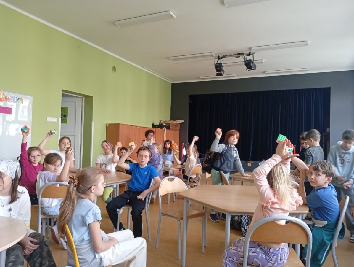 W piątek, 17 kwietnia, w naszej szkole odbyły się pierwsze zmagania z okazji Światowego Dnia Kostki Rubika. Wydarzenie zostało zorganizowane przez Szkolny Samorząd i cieszyło się dużym zainteresowaniem uczniów. Podczas dużej przerwy chętni mogli spróbować swoich sił w układaniu kostki Rubika „na czas”. Rywalizacja była zacięta, a uczestnicy wykazali się nie tylko szybkością, ale także ogromną koncentracją i sprytem.